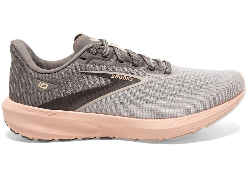 The Brooks Launch 10 Grey Crystal Grey Pale Peach (Women's) is now available at Side Kicks!