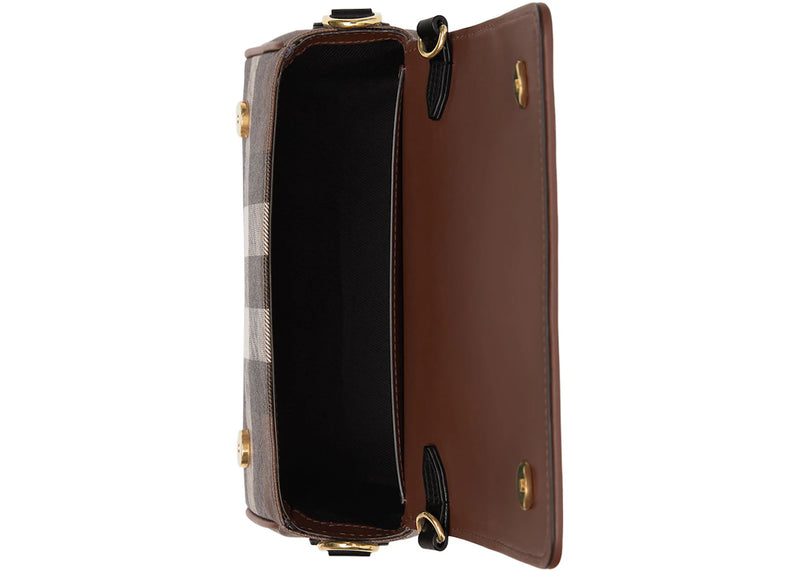 Burberry Check and Leather Crossbody Bag Dark Birch Brown