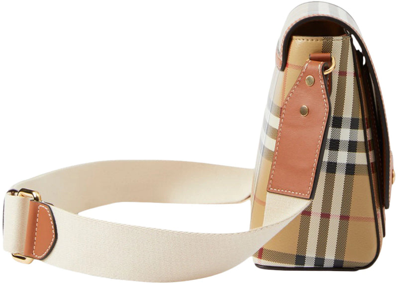The Burberry Check And Leather Note Bag Briar Brown is now available at Side Kicks!