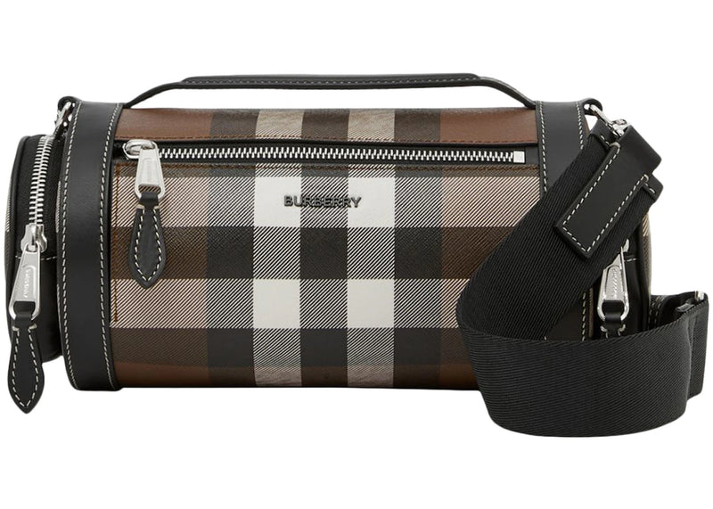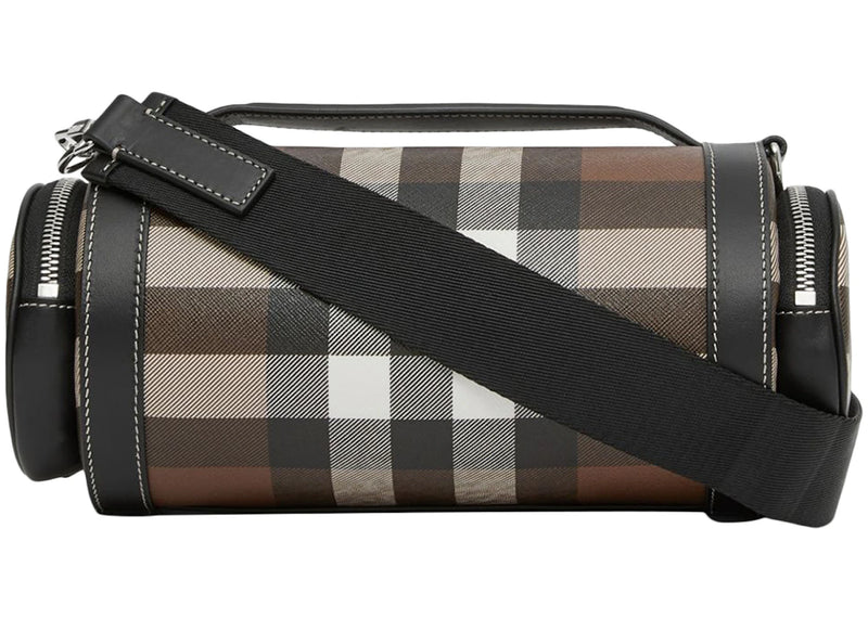 The Burberry Check And Leather Sound Bag Dark Birch Brown/Black is now available at Side Kicks!