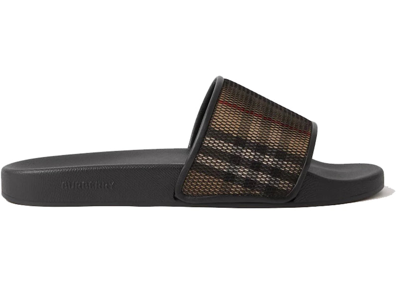 The Burberry Check Cotton Mesh Slides Black is now available at Side Kicks!