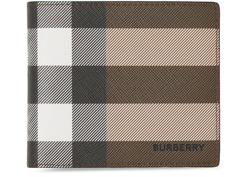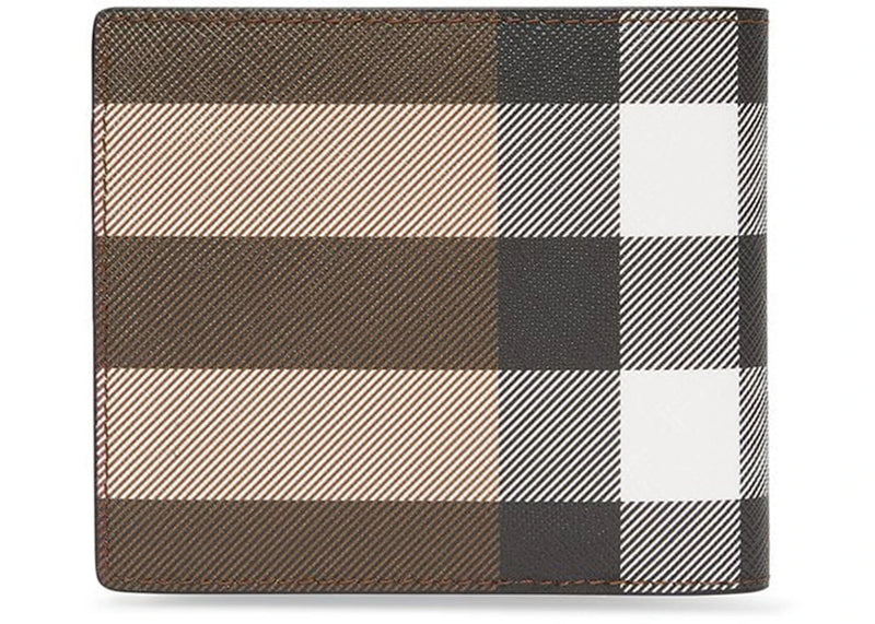 Burberry Check E-canvas International Bifold Wallet 8 slot Dark Birch Brown