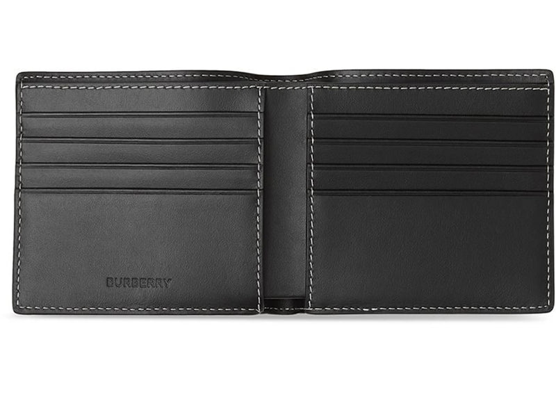 The Burberry Check E-canvas International Bifold Wallet 8 slot Dark Birch Brown is now available at Side Kicks!