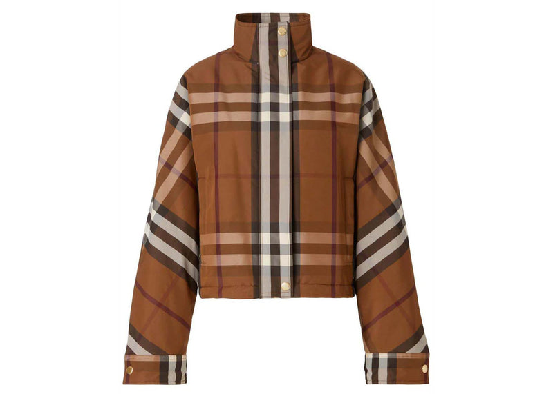 The Burberry Check Funnel-Neck Cropped Jacket Brown is now available at Side Kicks!