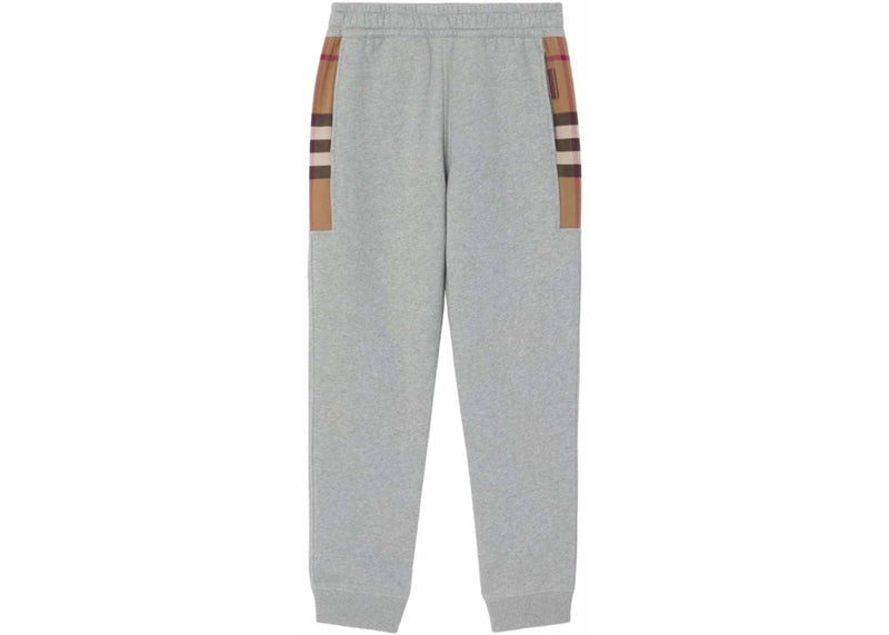 The Burberry Check-Panel Track Pants Ligh Grey is now available at Side Kicks!