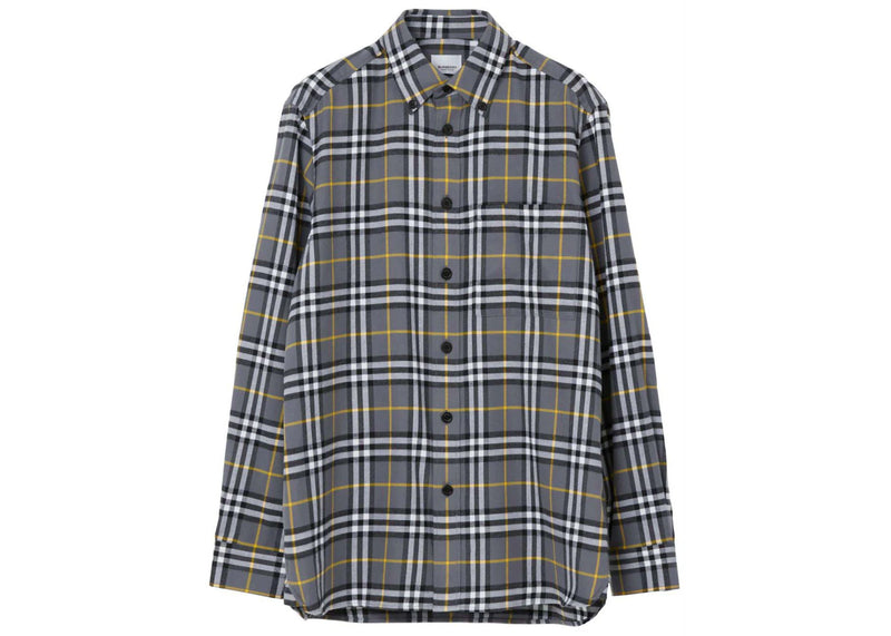 The Burberry Check-Pattern Cotton Flannel Shirt Grey/Yellow is now available at Side Kicks!