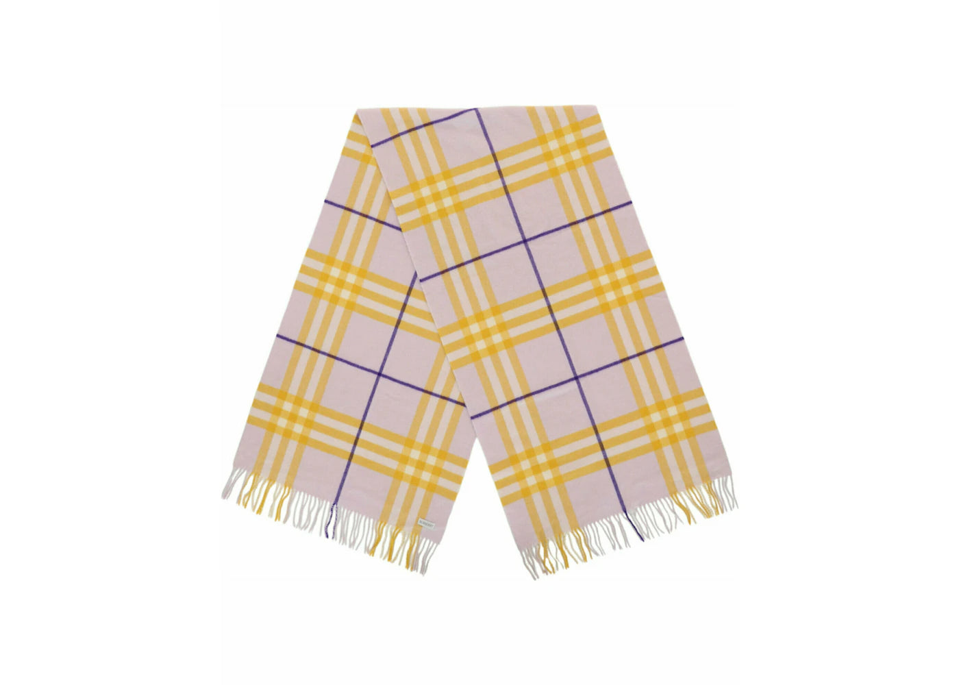 The Burberry Check-Pattern Fringed Cashmere Scarf Hazel is now available at Side Kicks!