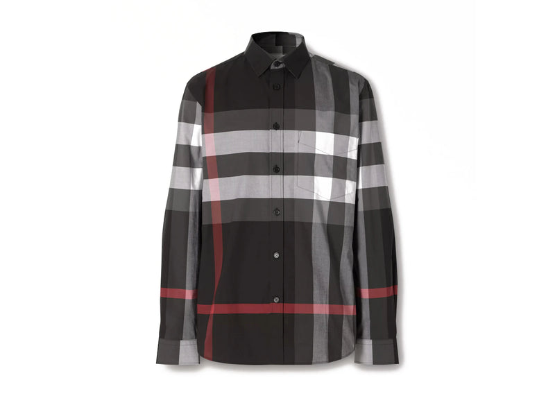 The Burberry Check Stretch Cotton Poplin Shirt Charcoal is now available at Side Kicks!