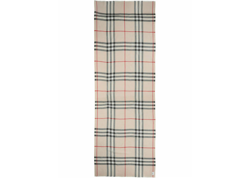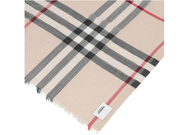The Burberry Check Wool Silk Scarf White is now available at Side Kicks!