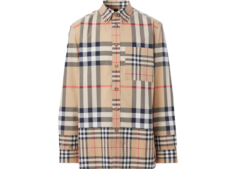 The Burberry Contrast Check Cotton Shirt Archive Beige is now available at Side Kicks!