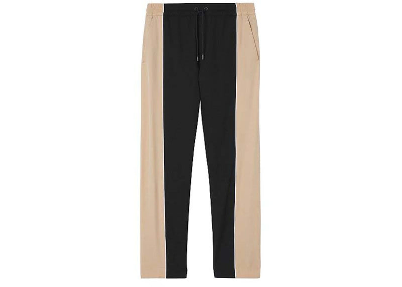 The Burberry Contrast Stripe Wool Track Pants Black Beige is now available at Side Kicks!