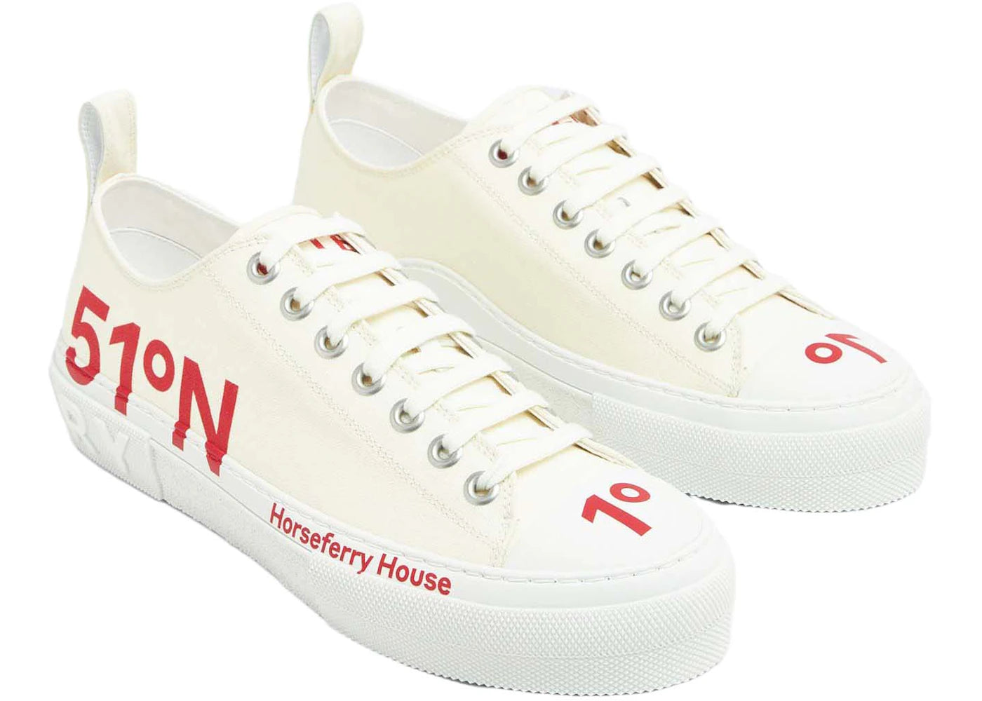The Burberry Coordinates Printed Lace-Up Sneakers White Red is now available at Side Kicks!