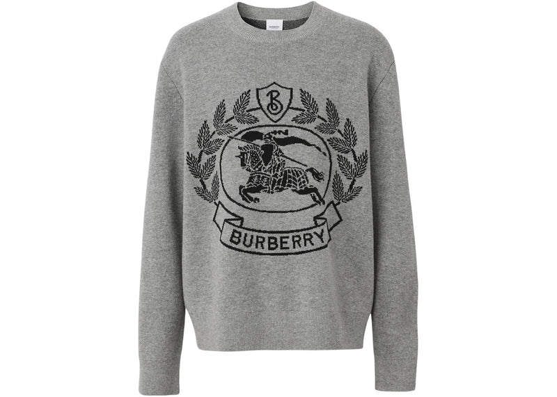 The Burberry EKD Wool Jacquard Oversized Sweater Dark Thunder Grey is now available at Side Kicks!
