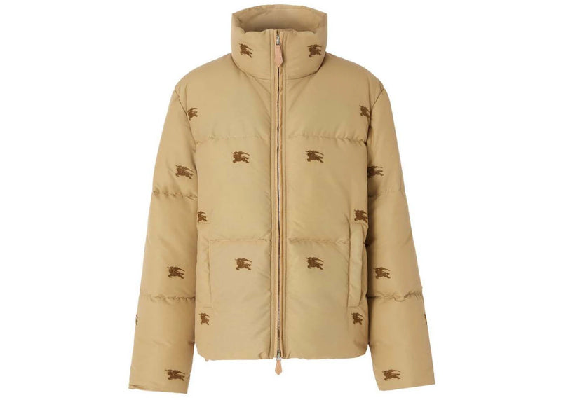 The Burberry Embroidered Ekd Nylon Puffer Jacket Camel is now available at Side Kicks!