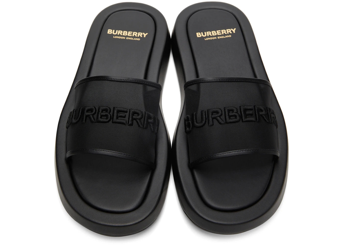 The Burberry Embroidered Logo Slide Black (Women's) is now available at Side Kicks!