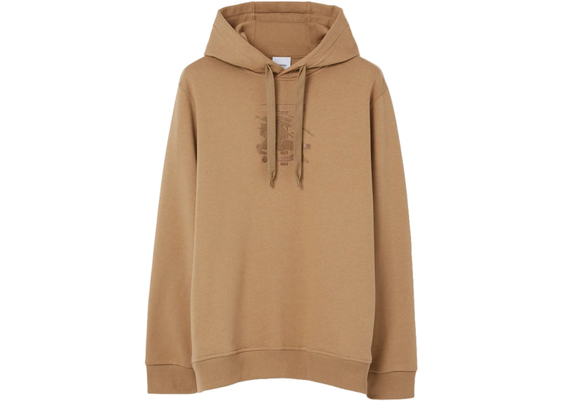 The Burberry Embroidered Monogram EKD Cotton Hoodie Camel is now available at Side Kicks!