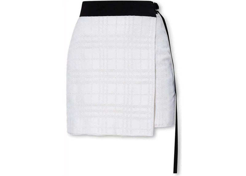 The Burberry Everlie Jacquard Check Belted Wrap Skirt White/Black is now available at Side Kicks!
