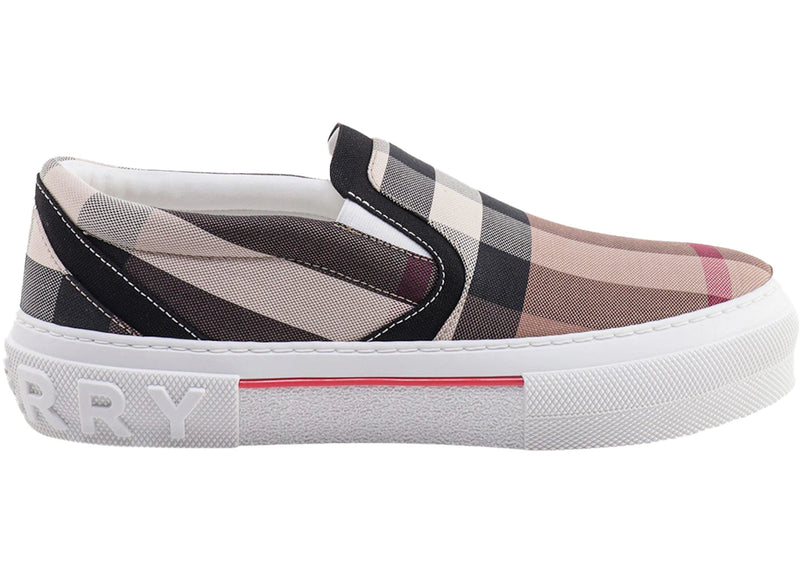 The Burberry Exaggerared Check Slip On Birch Brown is now available at Side Kicks!