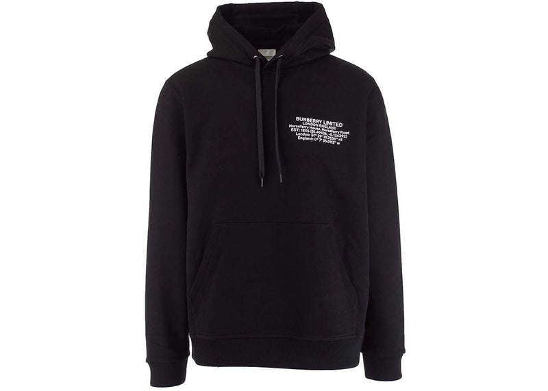 The Burberry Geographic Coordinates Hoodie Black is now available at Side Kicks!