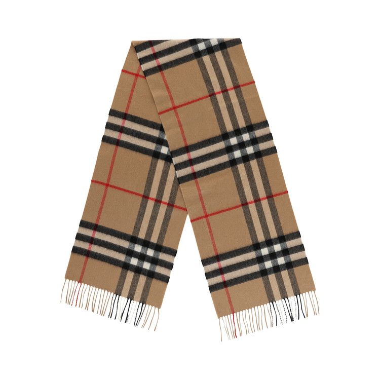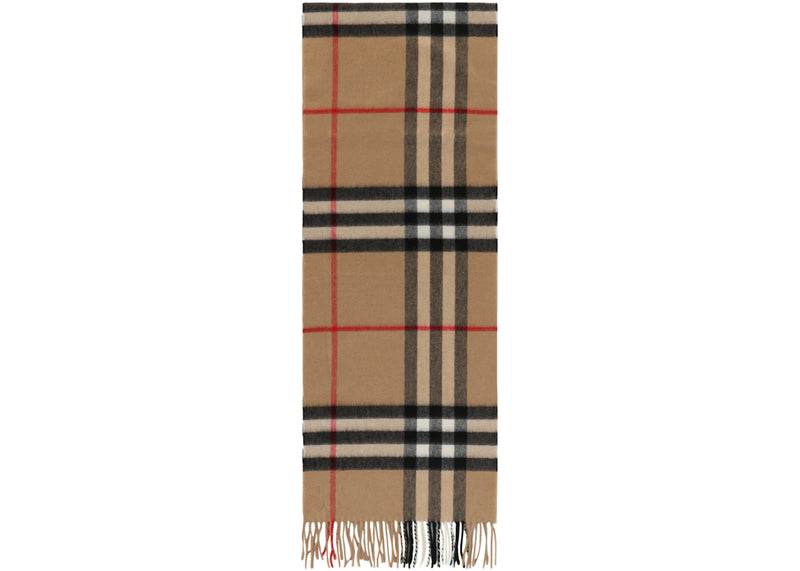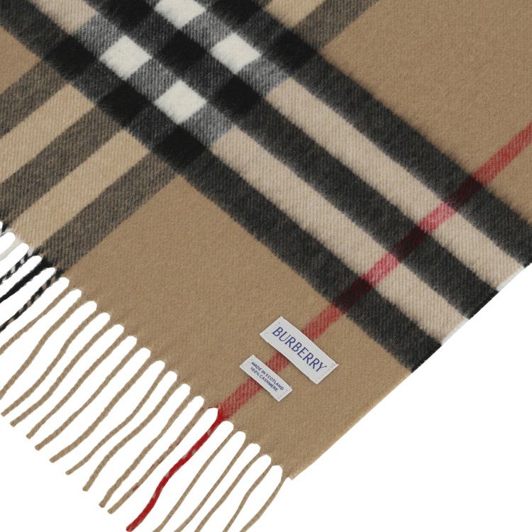 The Burberry Giant Check Cashmere Scarf Beige is now available at Side Kicks!