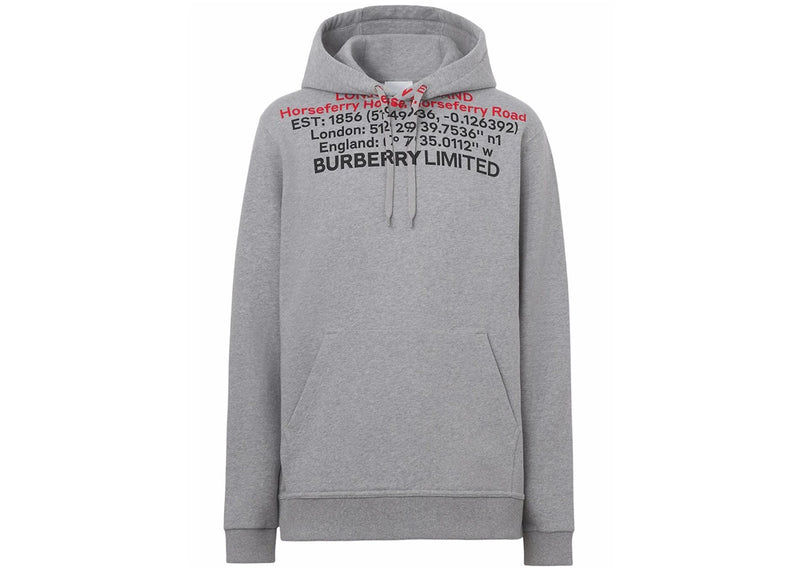 The Burberry Horseferry Location Print Hoodie Gray is now available at Side Kicks!