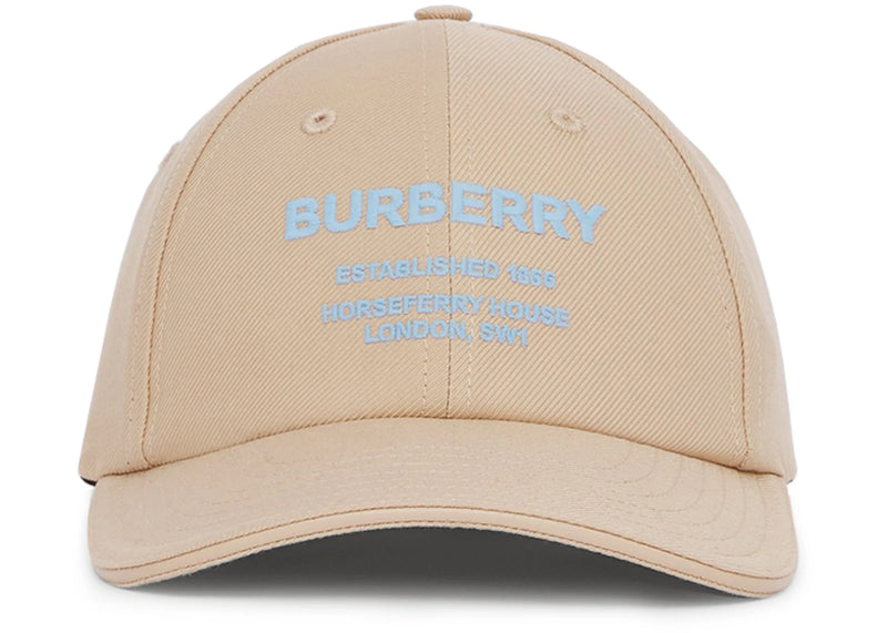 Burberry Horseferry Motif Cotton Baseball Cap Soft Fawn/Light Blue