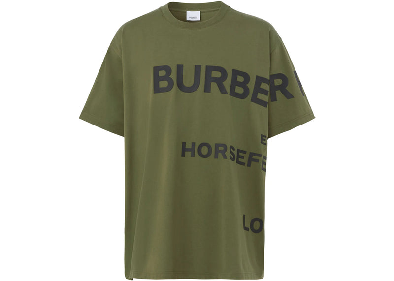 The Burberry Horseferry Print Cotton Oversized T-shirt Olive/Black is now available at Side Kicks!