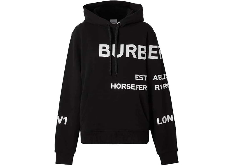 The Burberry Horseferry Print Oversized Cotton Drawstring Hoodie Black is now available at Side Kicks!