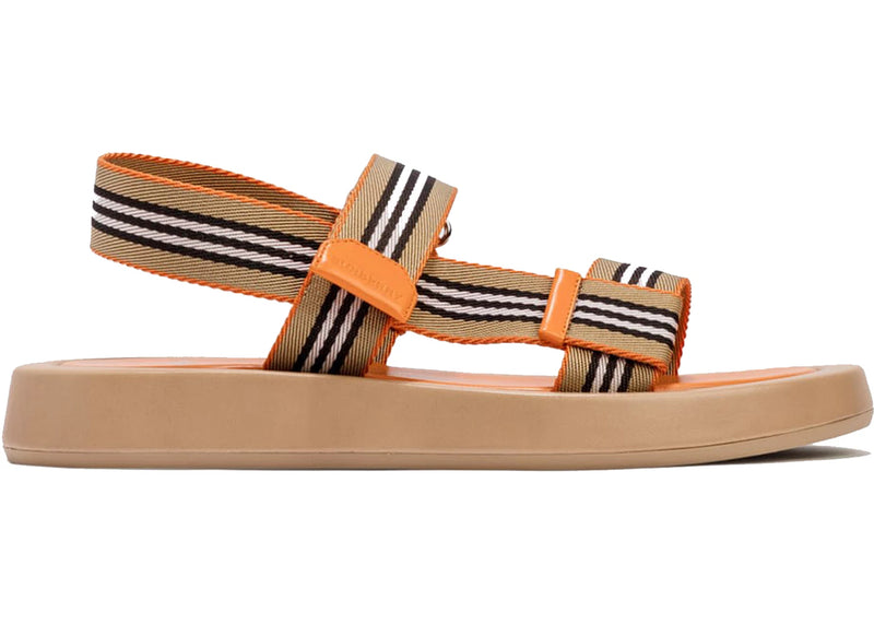 The Burberry Icon Stripe Stap Sandals Beige Orange Lambskin (Women's) is now available at Side Kicks!