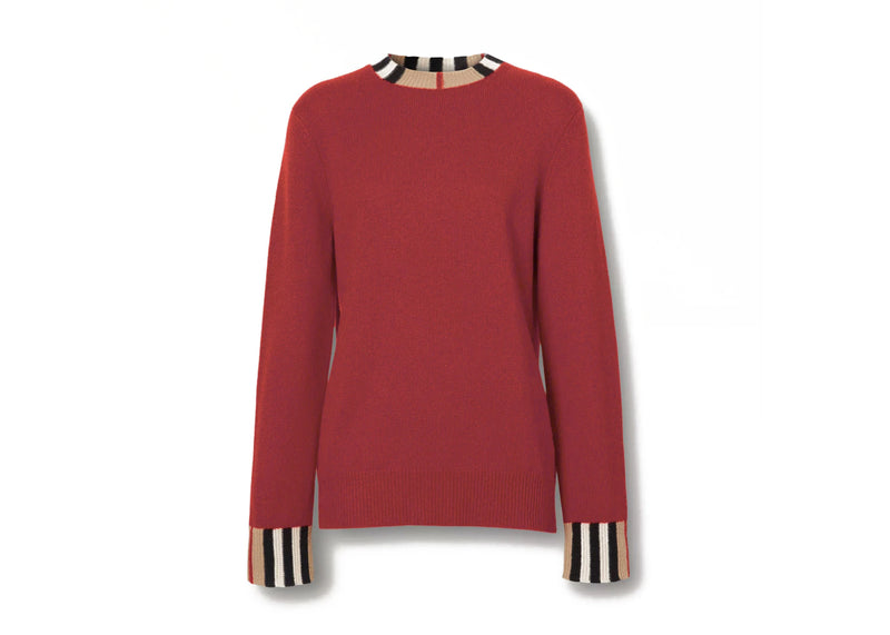 The Burberry Icon Stripe Trim Cashmere Sweater Bright Red is now available at Side Kicks!
