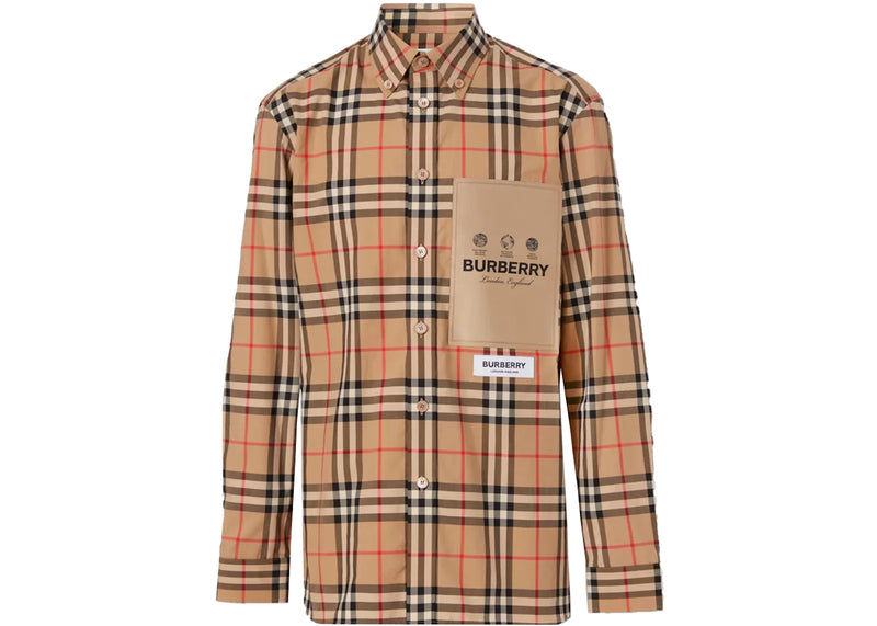 The Burberry Label Applique Check Cotton Poplin Shirt Archive Beige is now available at Side Kicks!