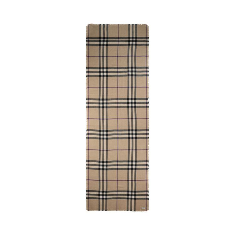 The Burberry Large Check Gauze Scarf Sand Lichen is now available at Side Kicks!