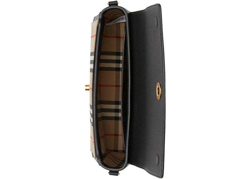Burberry Leather and Vintage Check Note Crossbody Bag Black