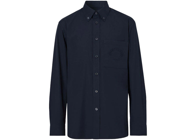 The Burberry Logo-Embroidered Long-Sleeved Shirt Midnight Blue is now available at Side Kicks!