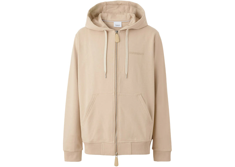 The Burberry Logo Print Stretch Cotton Zip Hoodie Soft Fawn is now available at Side Kicks!
