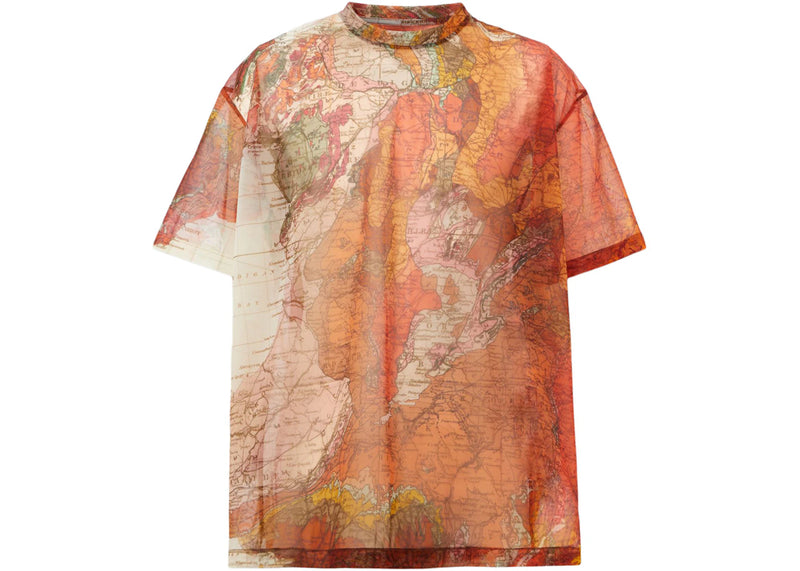 The Burberry Map Print Mesh Oversized T-Shirt Bright Orange is now available at Side Kicks!