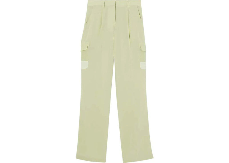 The Burberry Mid-Rise Silk Trousers Mist Green is now available at Side Kicks!