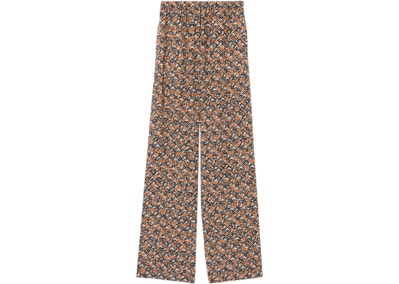 Burberry Monogram Print Silk Wide-Leg Trousers Orange Multi