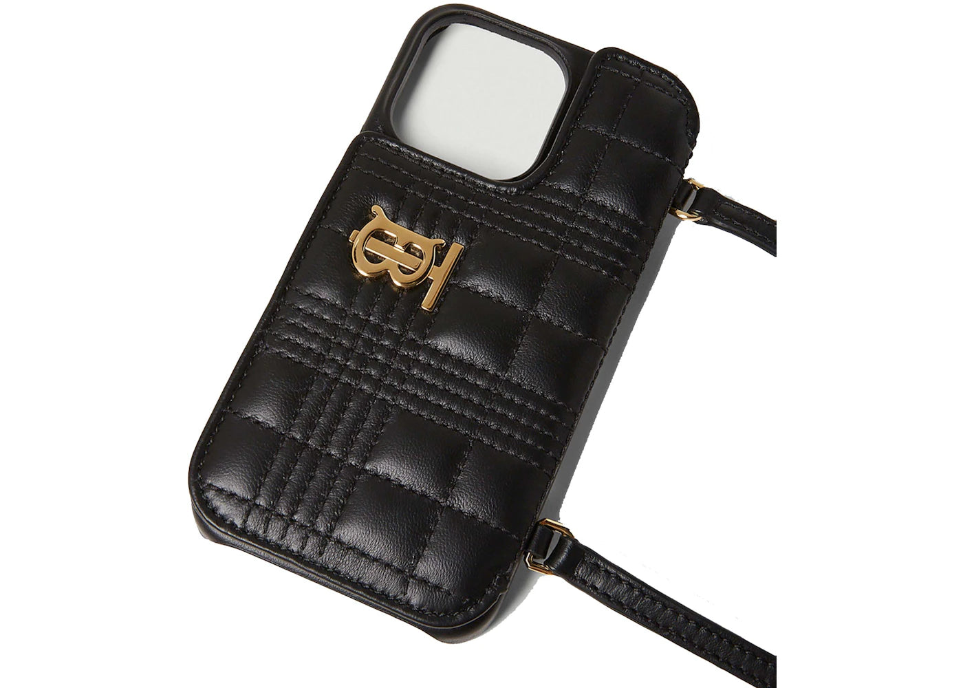 Burberry Quilted Lambskin Lola iPhone 13 Pro Phone Case with Strap Black