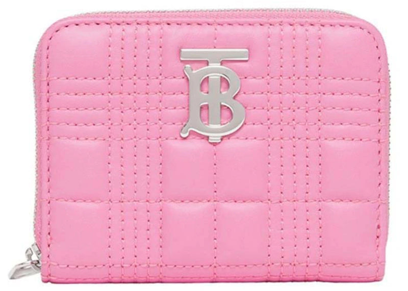 The Burberry Quilted Leather Lola Zip-Up Wallet Primrose Pink is now available at Side Kicks!