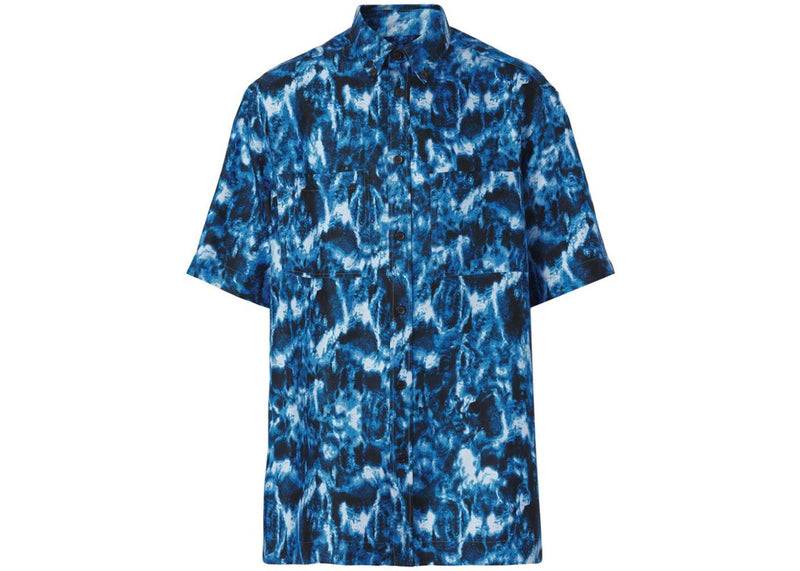 The Burberry Silk Ripple Print Short Sleeve Shirt Blue is now available at Side Kicks!