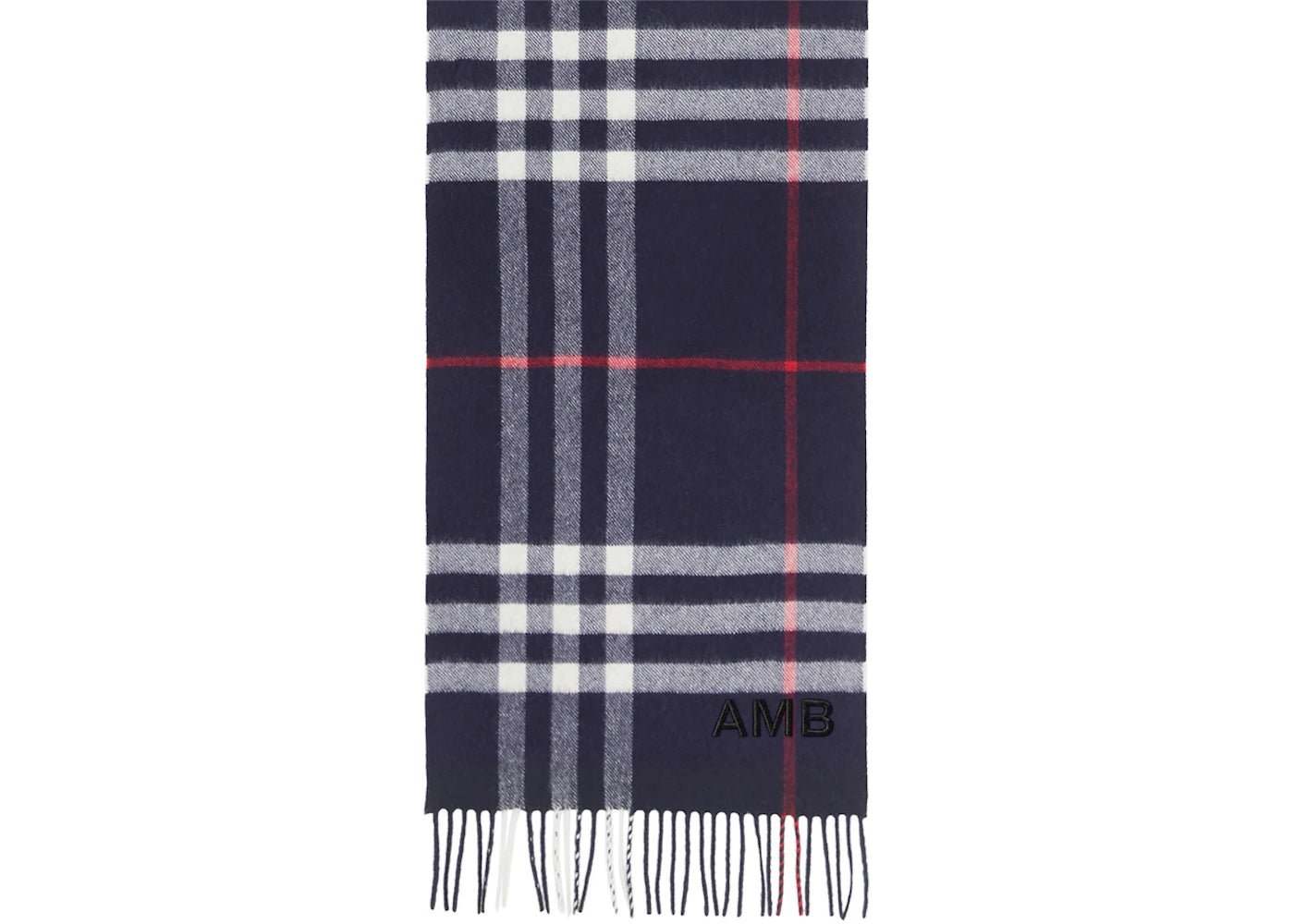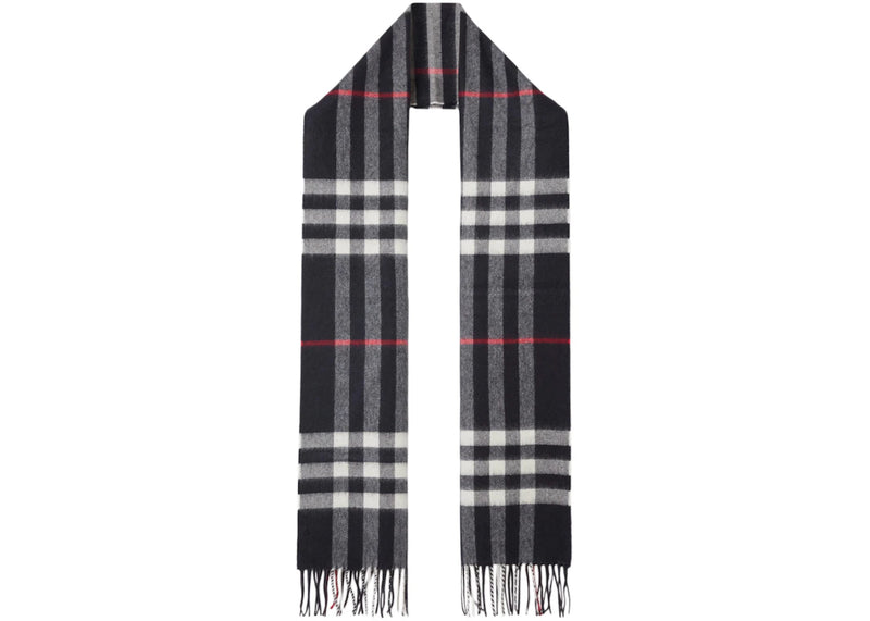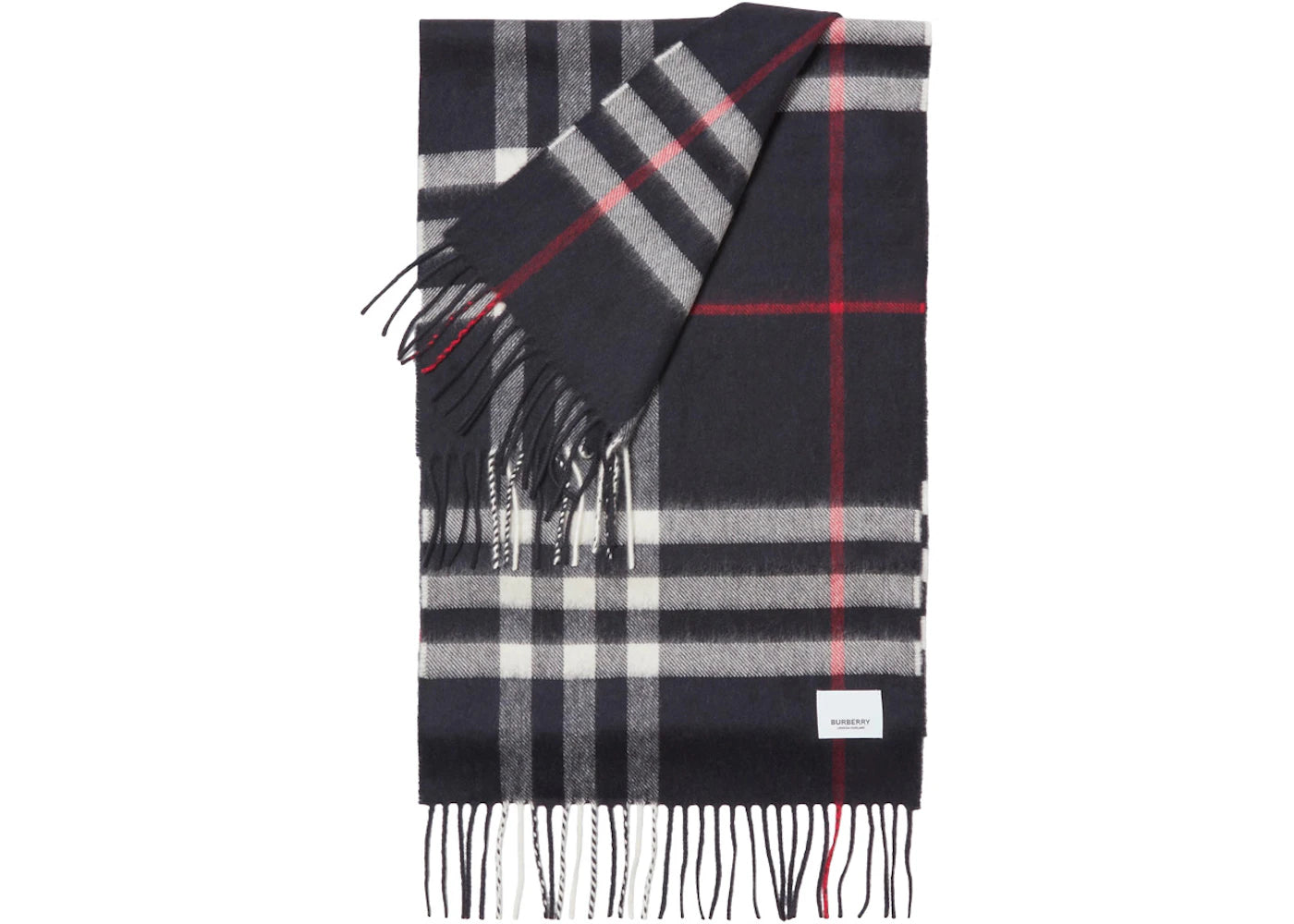 The Burberry The Classic Check Cashmere Scarf Navy is now available at Side Kicks!