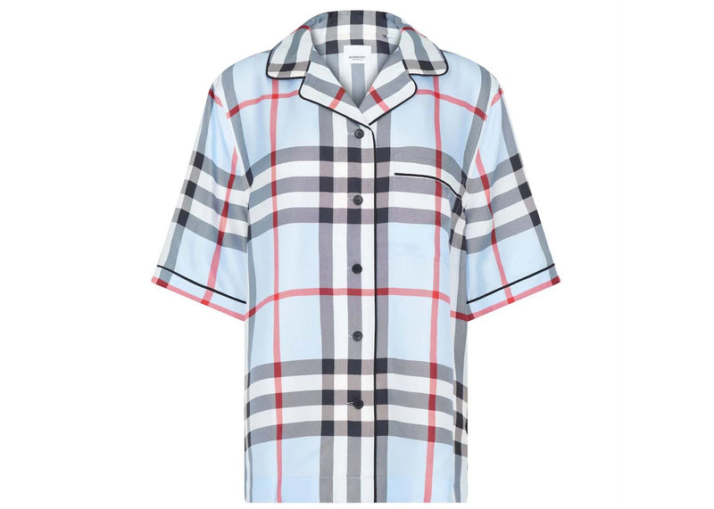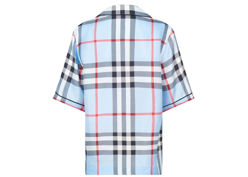 The Burberry Tierney Silk Shirt Pale Blue IP Check is now available at Side Kicks!