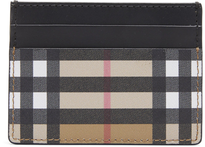 Burberry Vintage Check and Leather Card Case 4 Slot Black