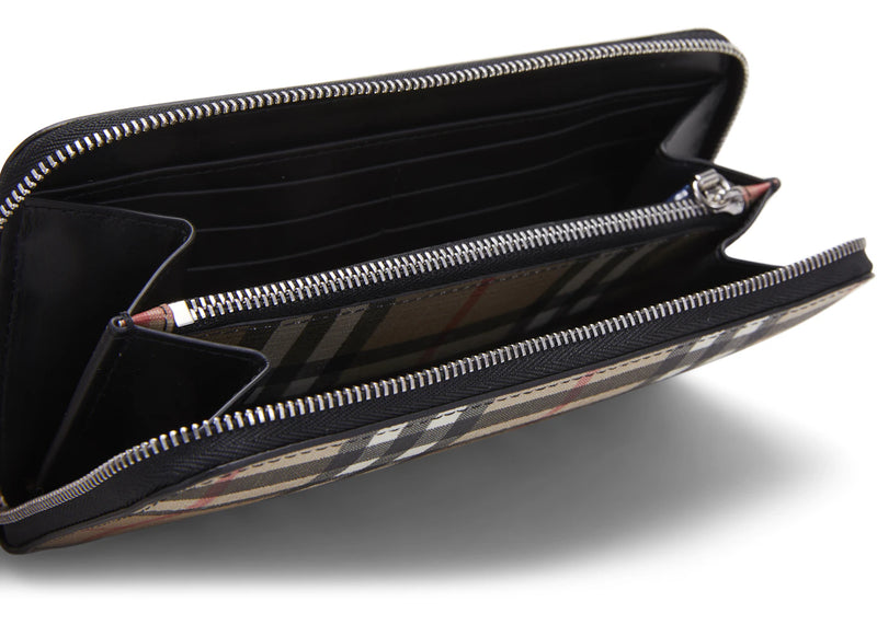 Burberry Vintage Check and Leather Ziparound Wallet 12 Slot Black
