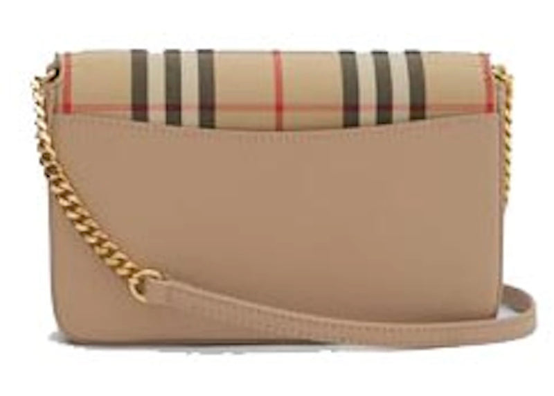 Burberry Vintage Check Canvas and Leather Bag Honey