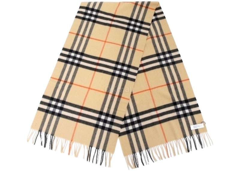 The Burberry Washed Giant Check Scarf Sand is now available at Side Kicks!