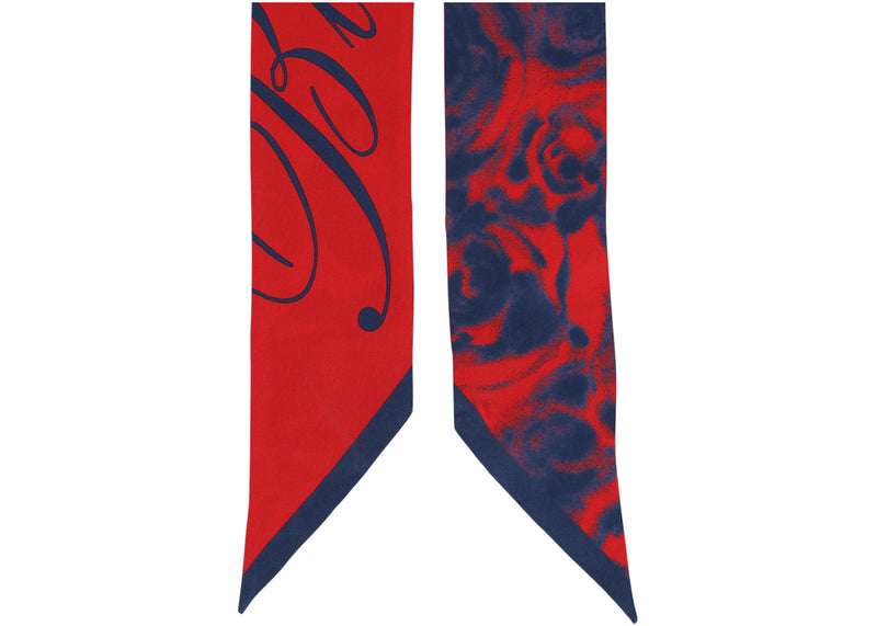 The Burberry Water Rose Silk Scarf Red/Blue is now available at Side Kicks!