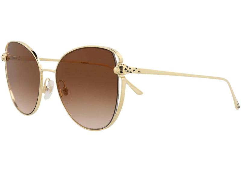 The Cartier Cat Eye Sunglasses Gold/Gold/Brown (CT0236S-30008369-002) is now available at Side Kicks!