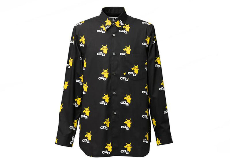 The CDG x Pokemon Pikachu Allover Shirt Black is now available at Side Kicks!